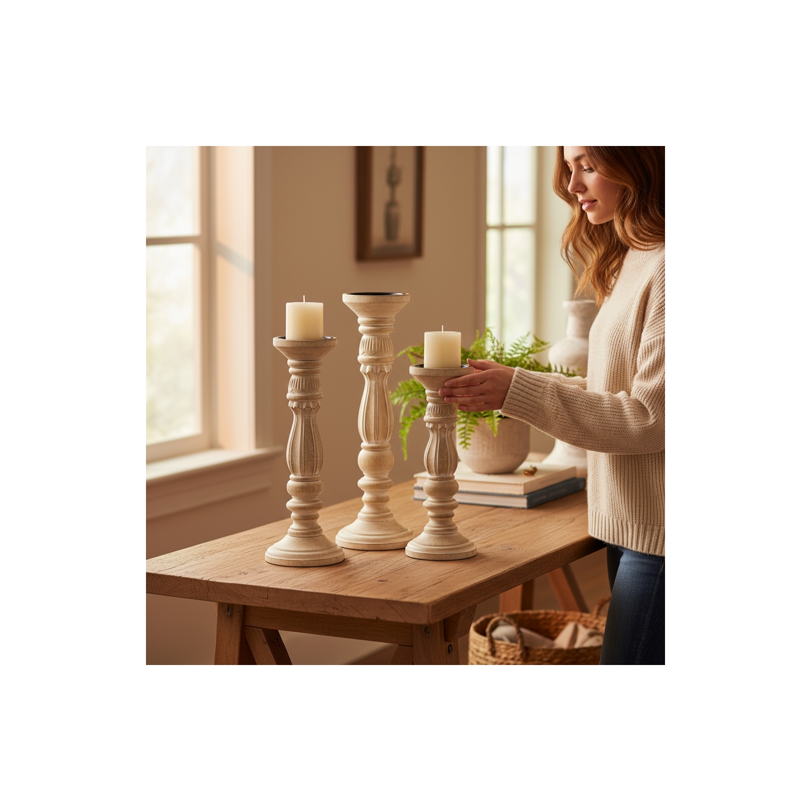 Set of 3 Annapolis Candle Holders-Bleached Wood