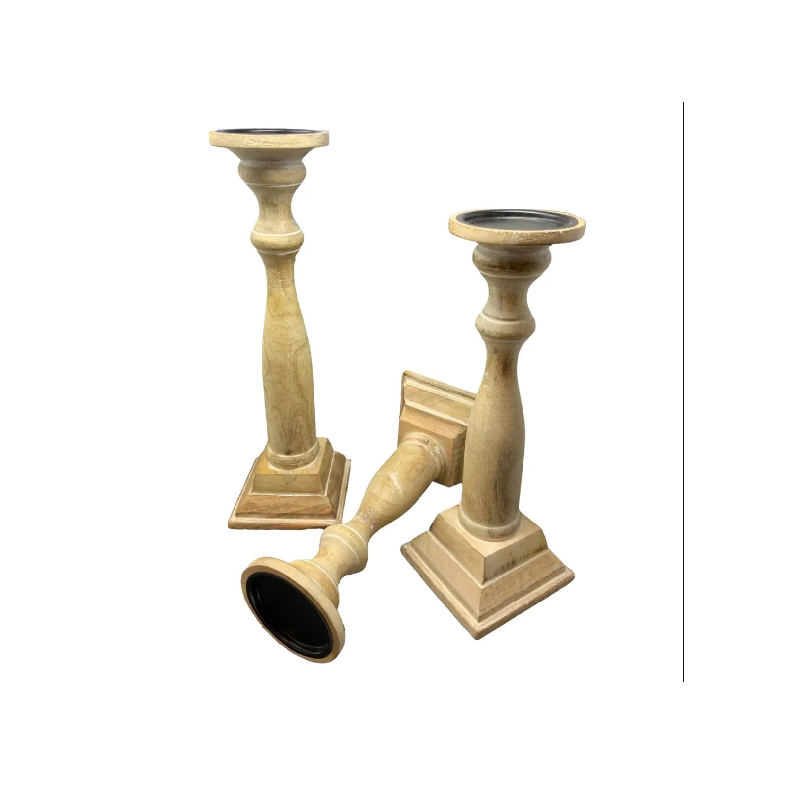 Set of 3 Manzanita Candle Holders-Bleached Wood
