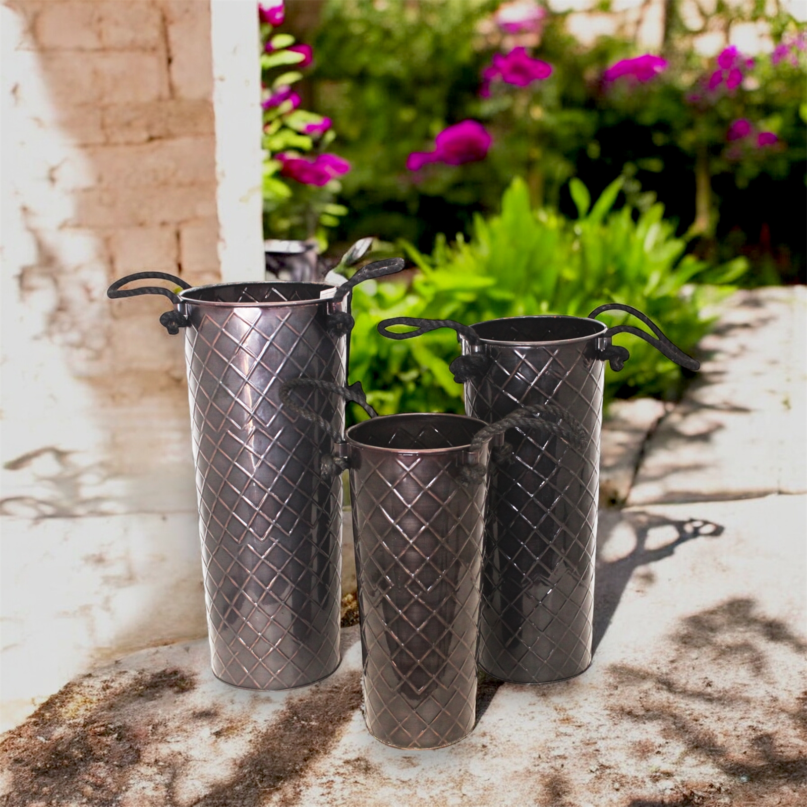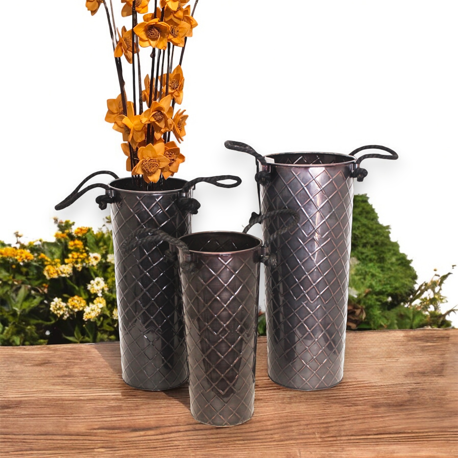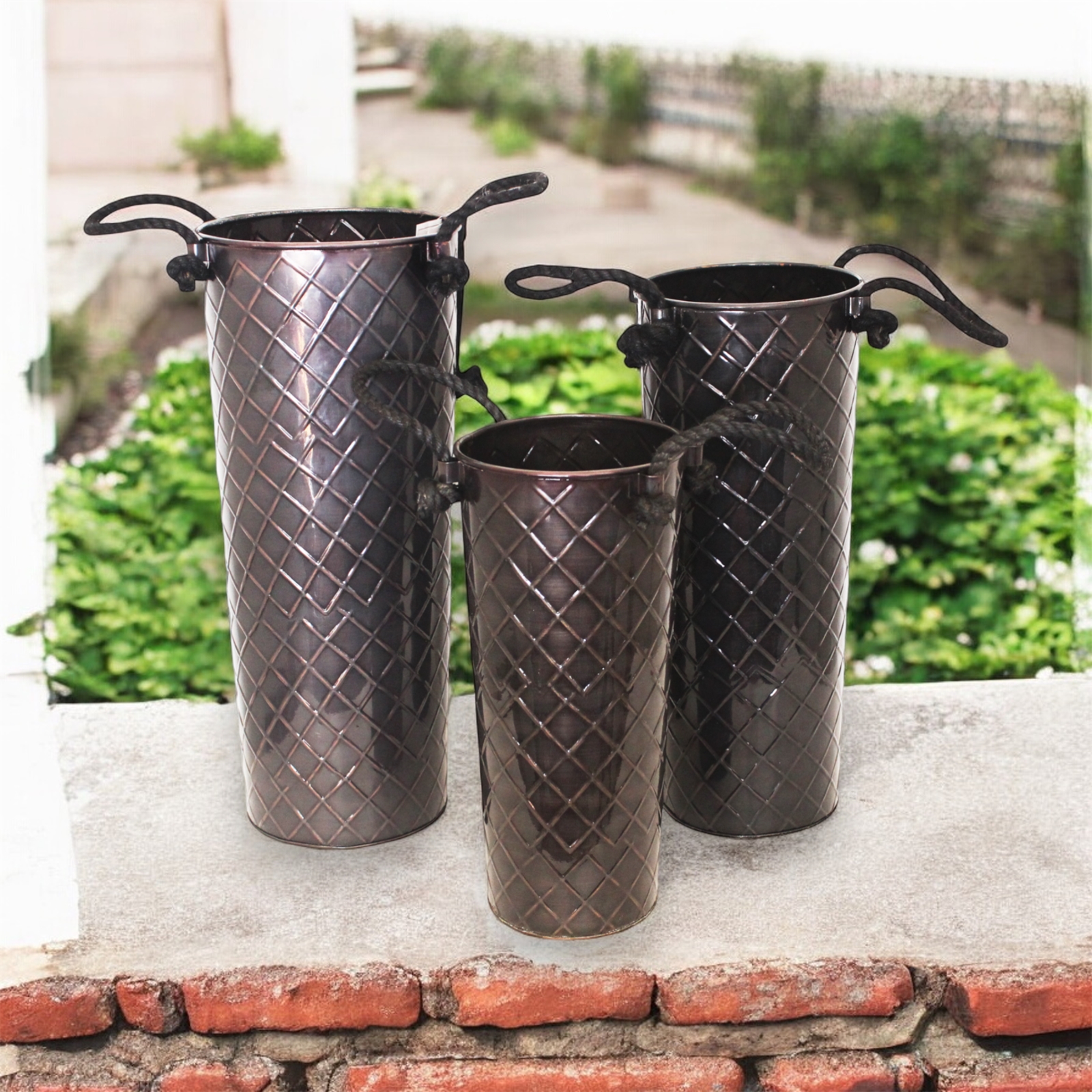 Set of 3 Glossy Bronze Rope Handled Flower Buckets