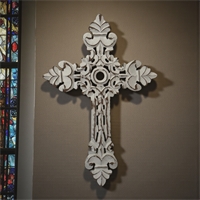 Uriel Angel Wings Wall Cross Antq White/Verdis Pat