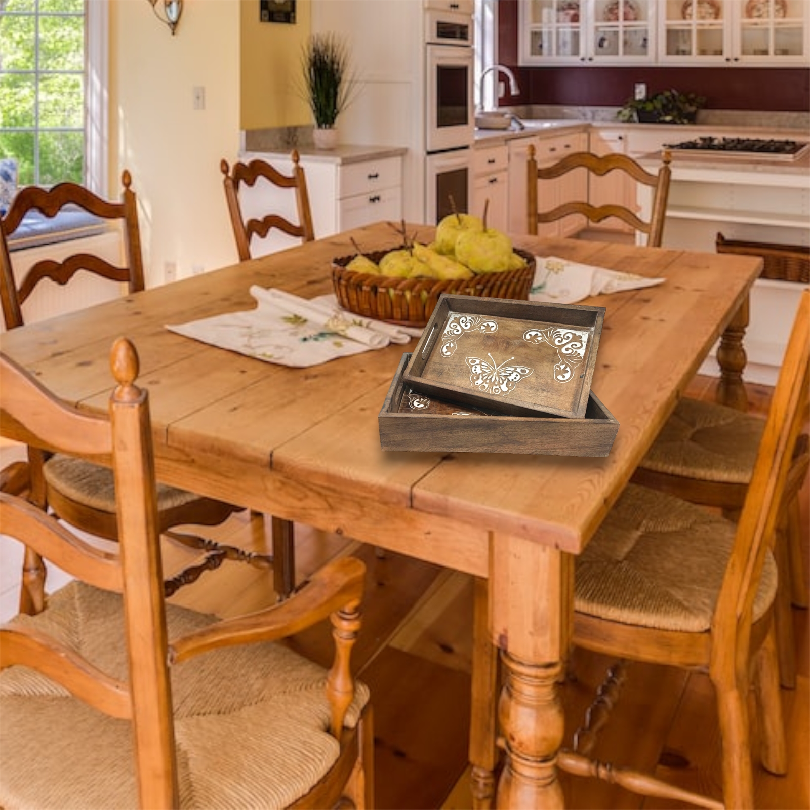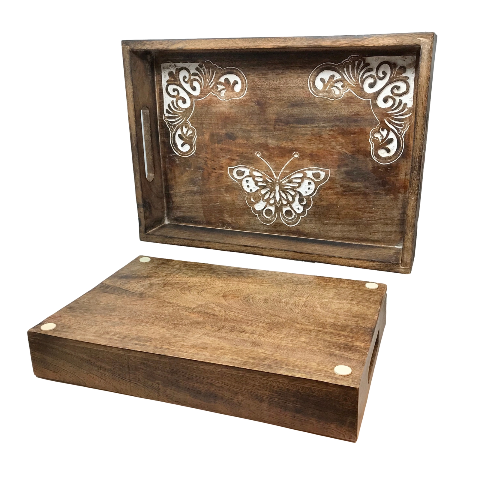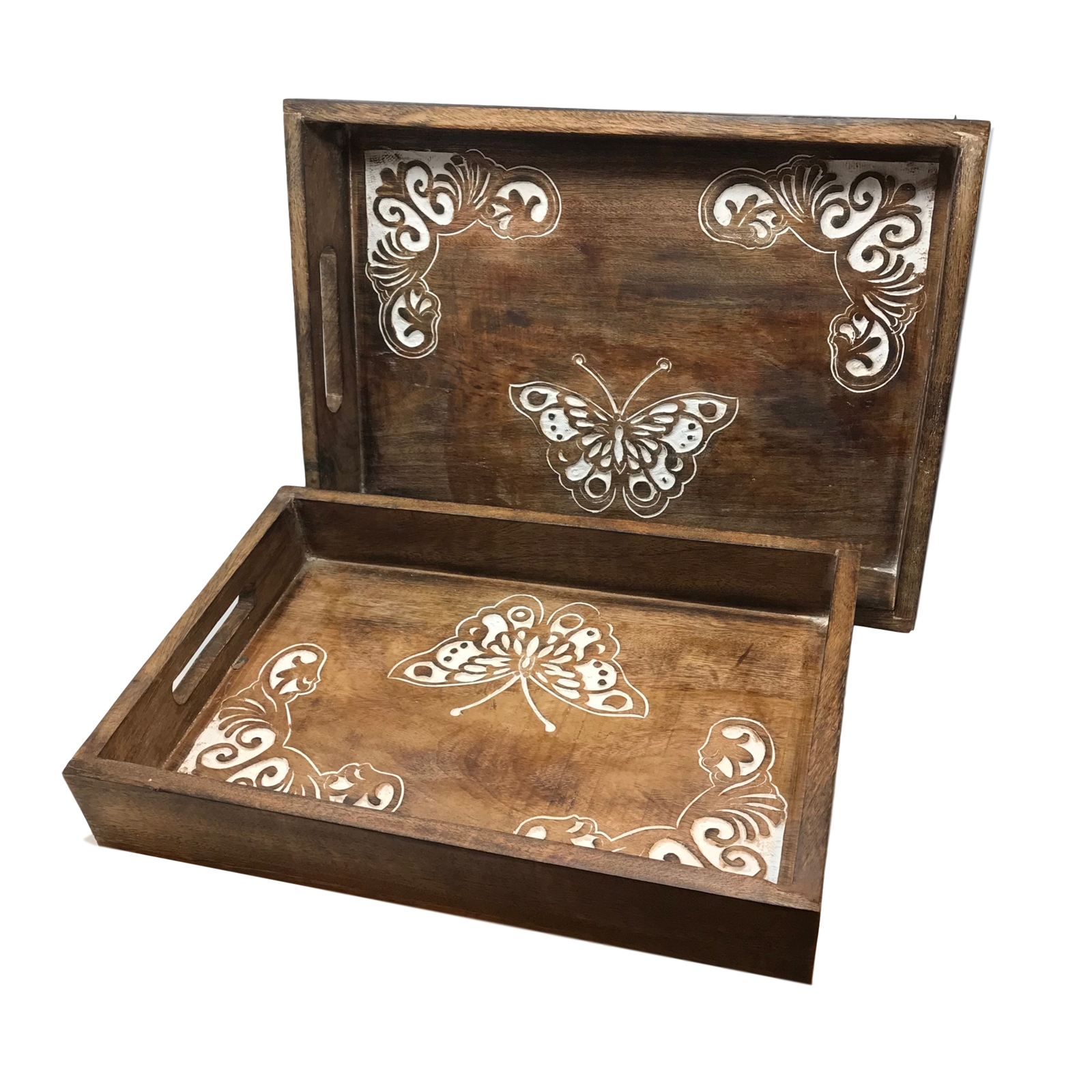 Set of 2 Dancing Butterfly Trays-Coffee- 2/2/6
