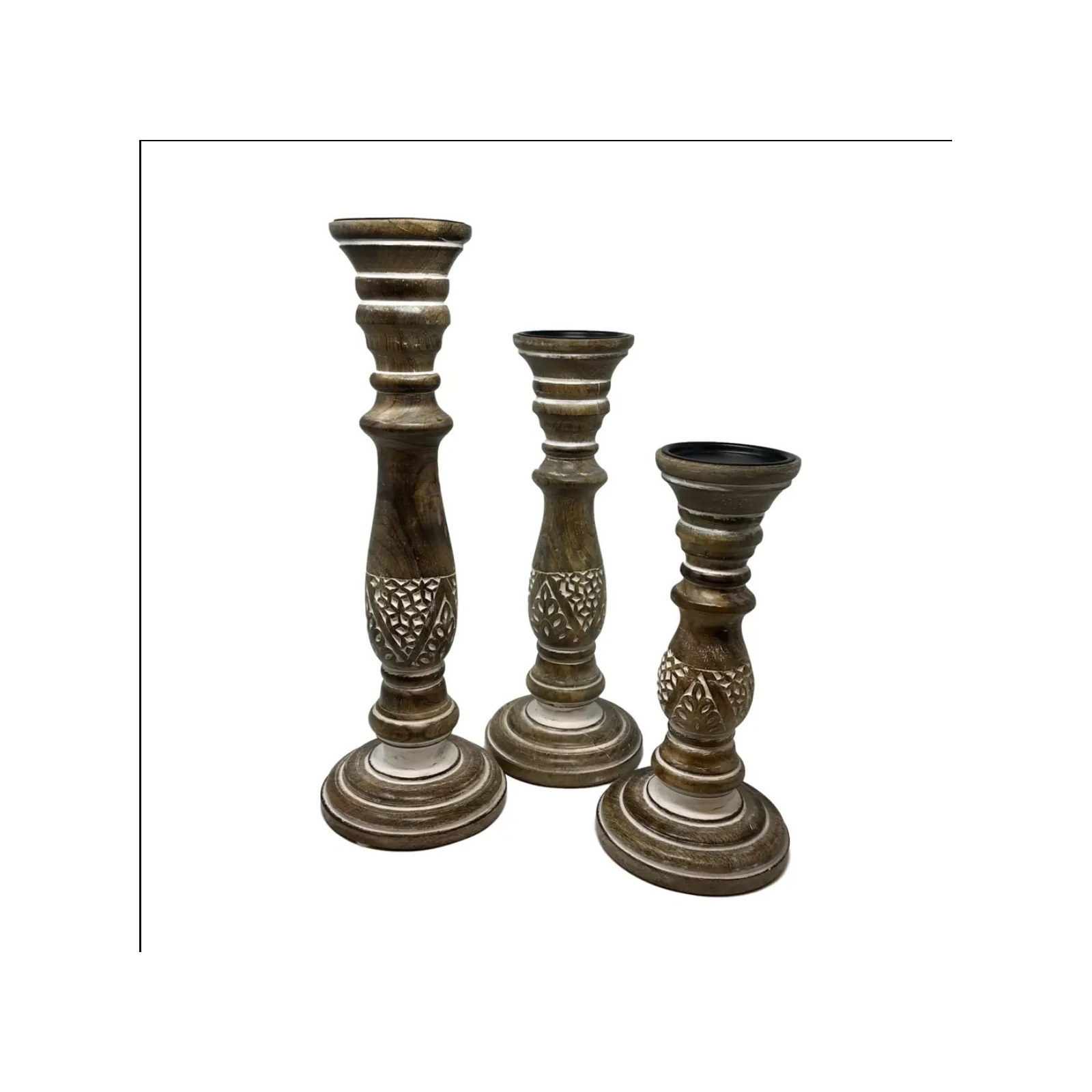 Set of 3 Fern Candle Holders-White Wash