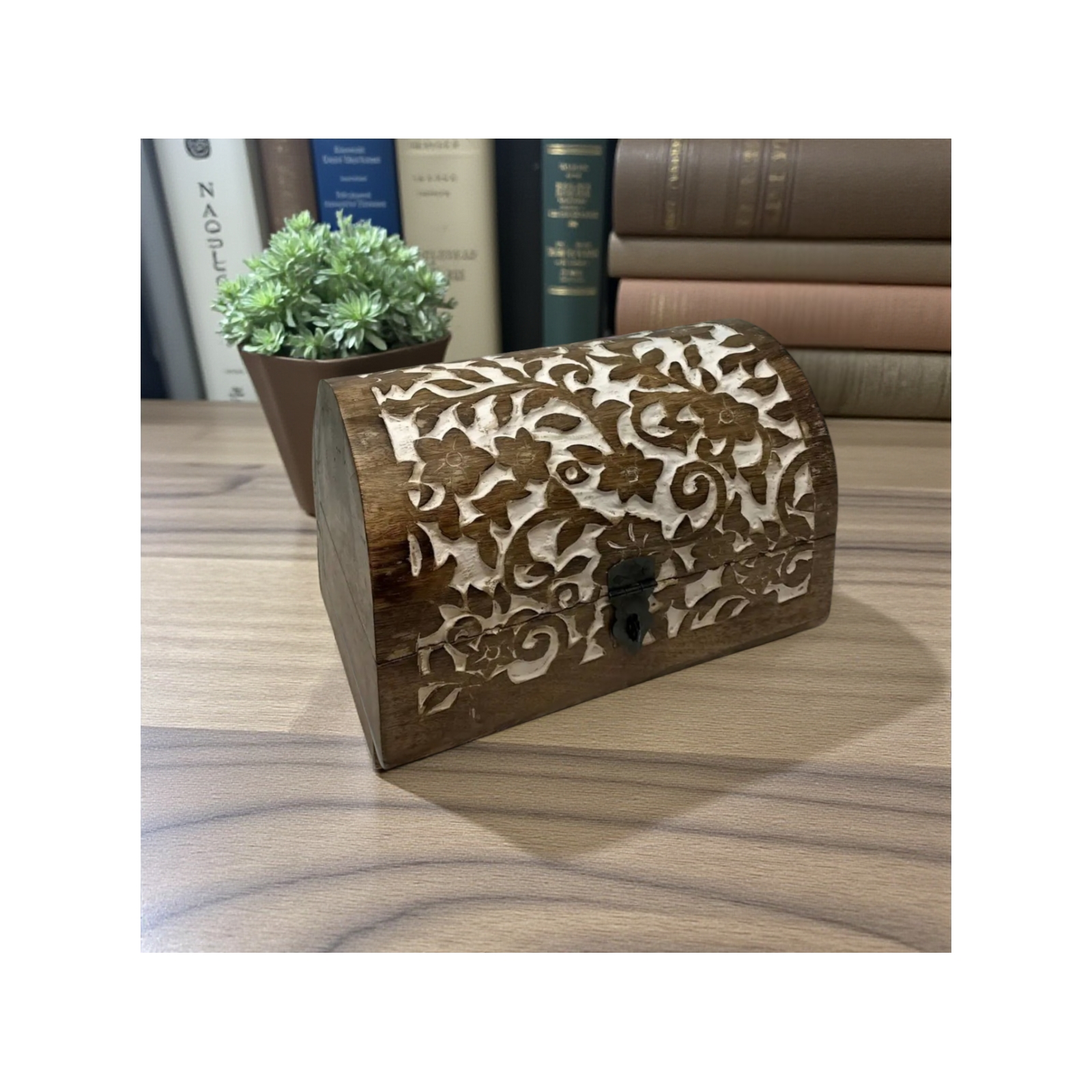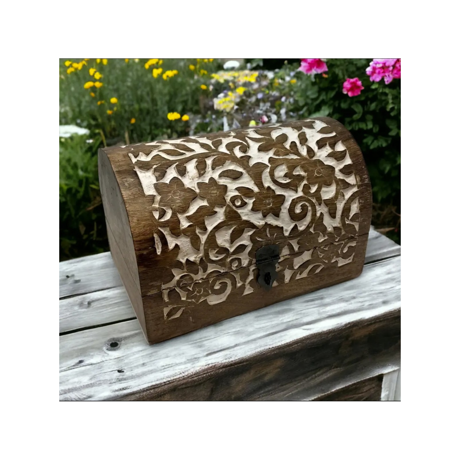 Elevate your storage experience with our exquisite Flower Garden hand-carved wooden chest from India. Meticulously crafted by skilled Indian craftsmen this domed chest showcases a mesmerizing chip-carved design that reflects their unparalleled expertise. Every curve and detail is a testament to their dedication.
