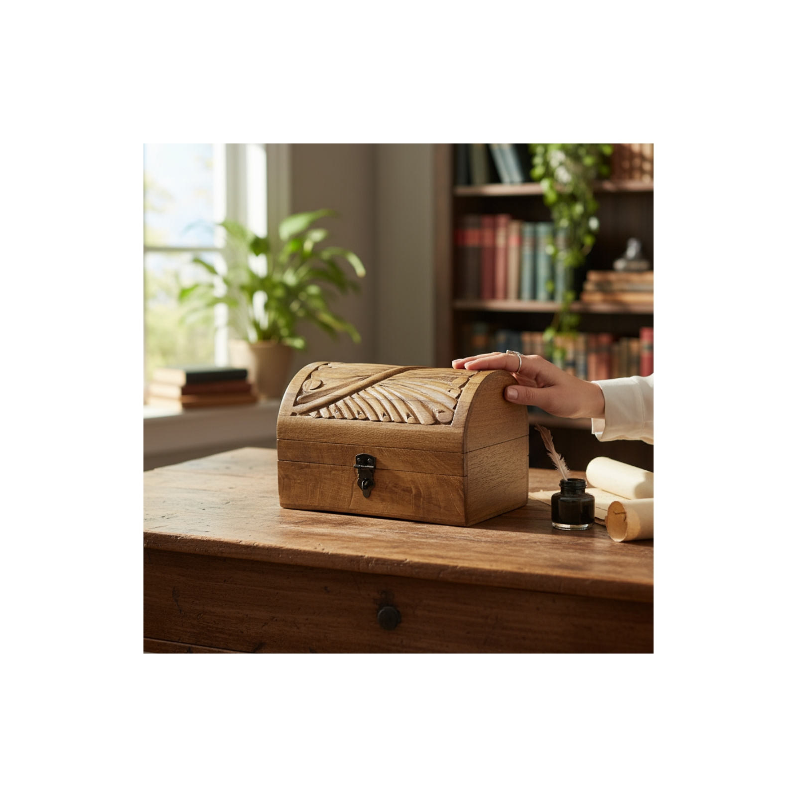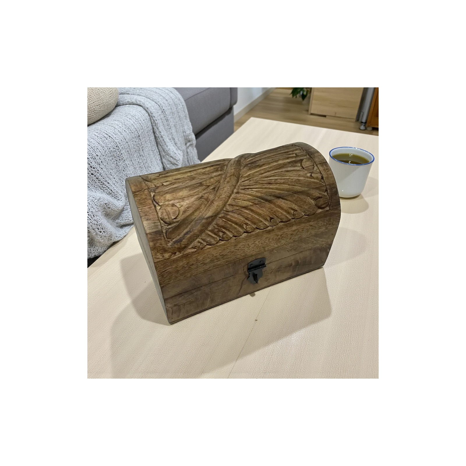 Wind Swept Half-Round Carved Box-Coffee