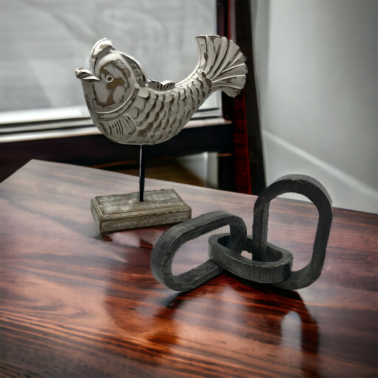 Measuring 12 wide x 3 deep x10.5 high these fish statues are the perfect addition to any coastal lake farmhouse or cabin-themed decor. Their intricate carvings and natural mango wood texture give them a rustic charm that is sure to impress your customers.
