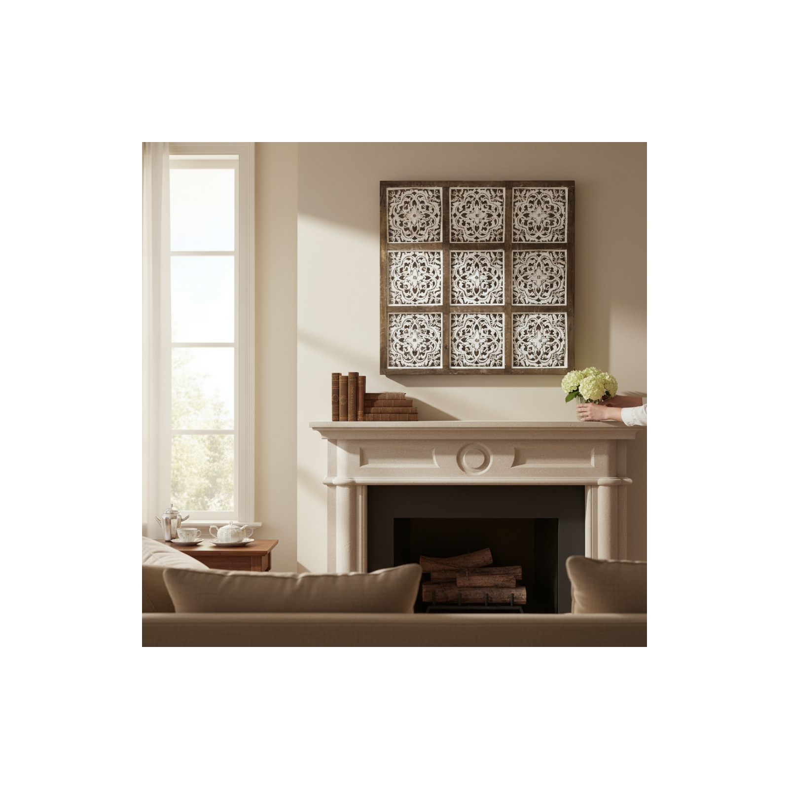 Queen Bee 9 Panel Wall Art -Whitewash