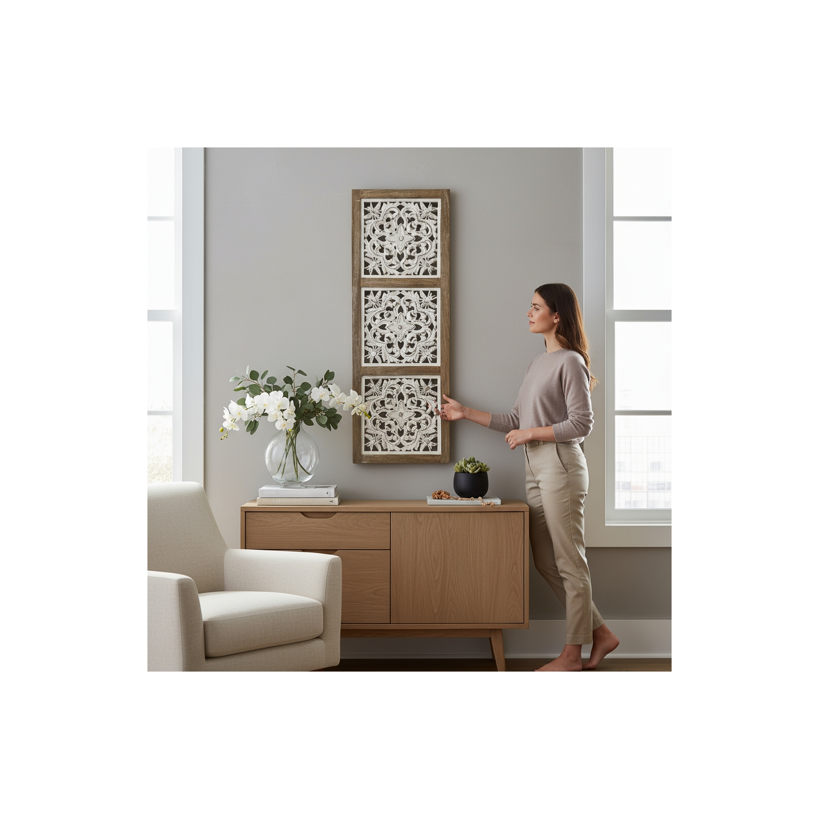 Queen Bee 3 Panel Wall Art -Whitewash