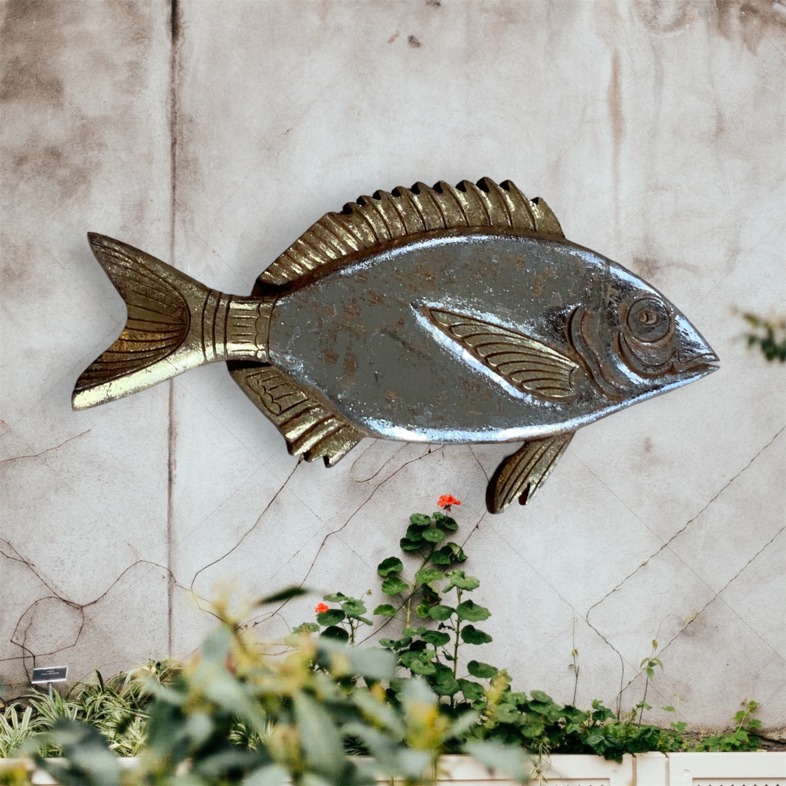 Measuring 24 inches wide, 2 inches thick, and standing at 11.25 inches high, our Sheepshead Raised Art Decor is a statement piece that captures attention with its lifelike dimensions. The distressed Silver Foil finish adds a touch of vintage elegance, creating a weathered look that imparts character and warmth to any room.