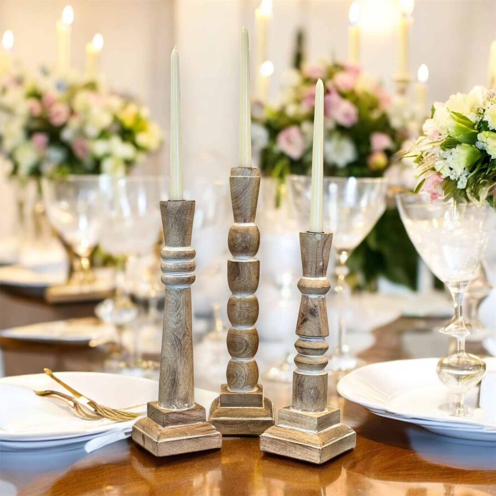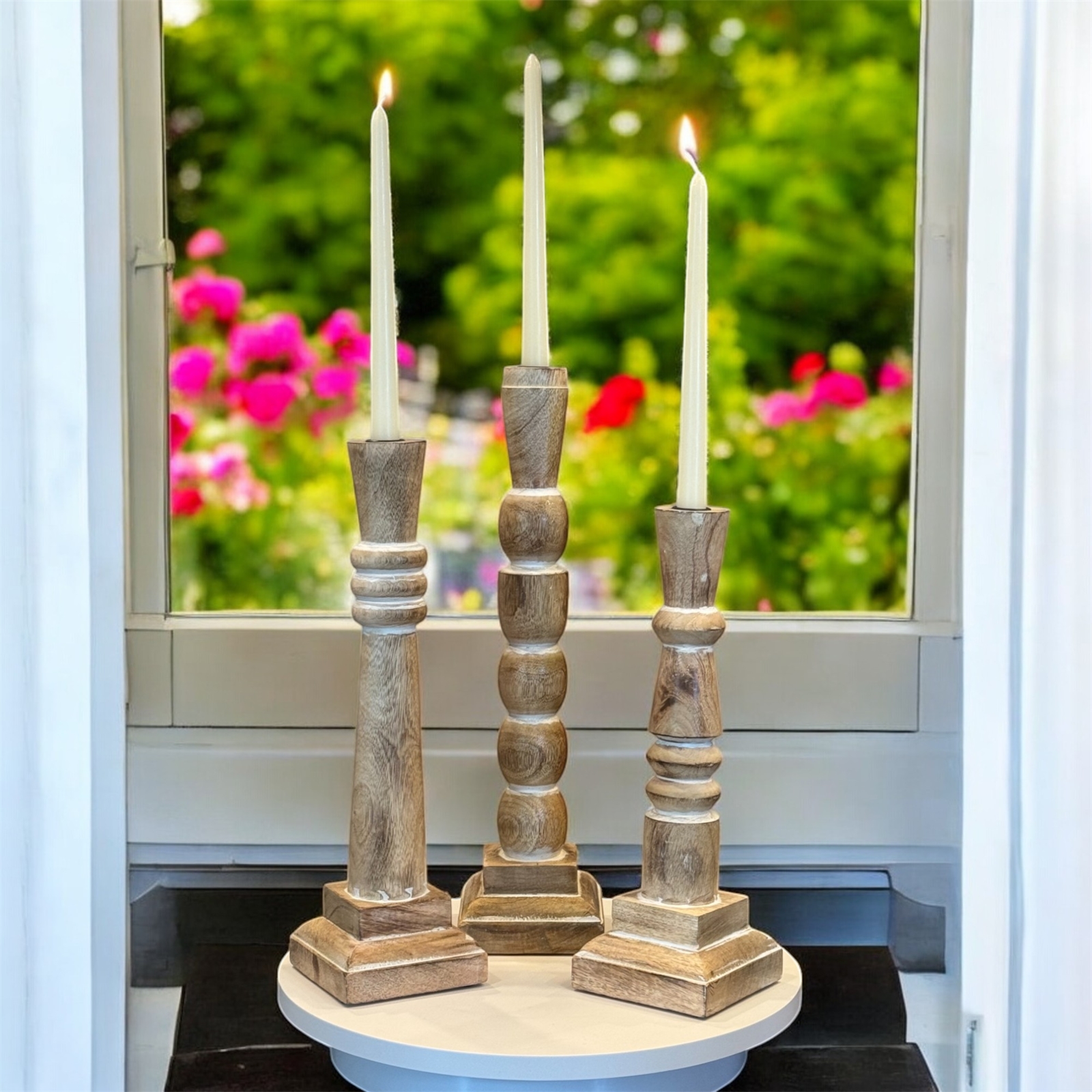 Set of 3 Colonnade Taper Holders- Natural White- 2/2/8