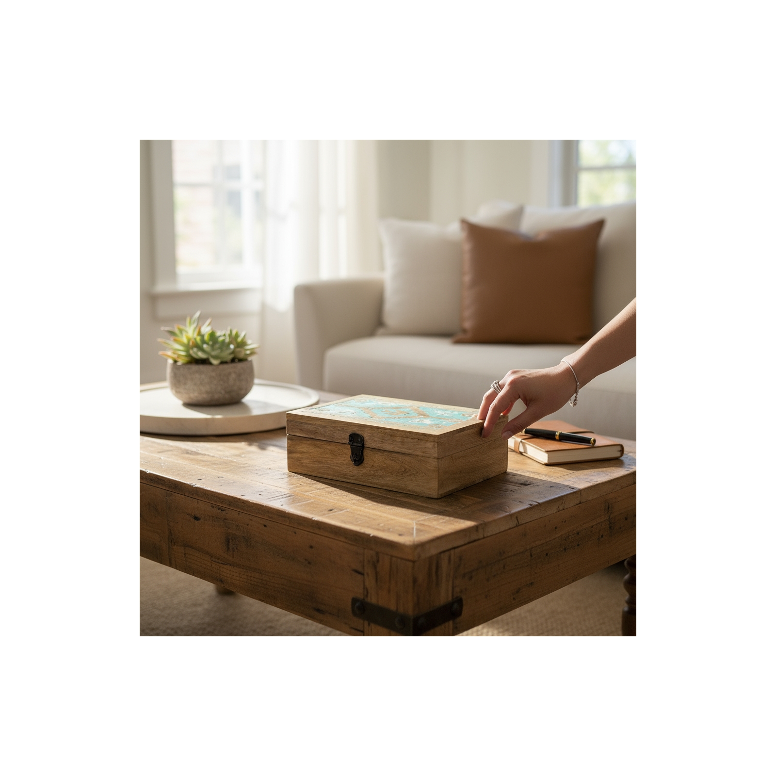 Designed with practicality in mind, this box measures 10 wide x 7 front to back x 3.5 high and features non-skid pads on the bottom to protect your furniture surfaces. Whether used to store keepsakes, jewelry, or small treasures, the Cerimonial Life Box brings a story of craftsmanship and culture into any space.