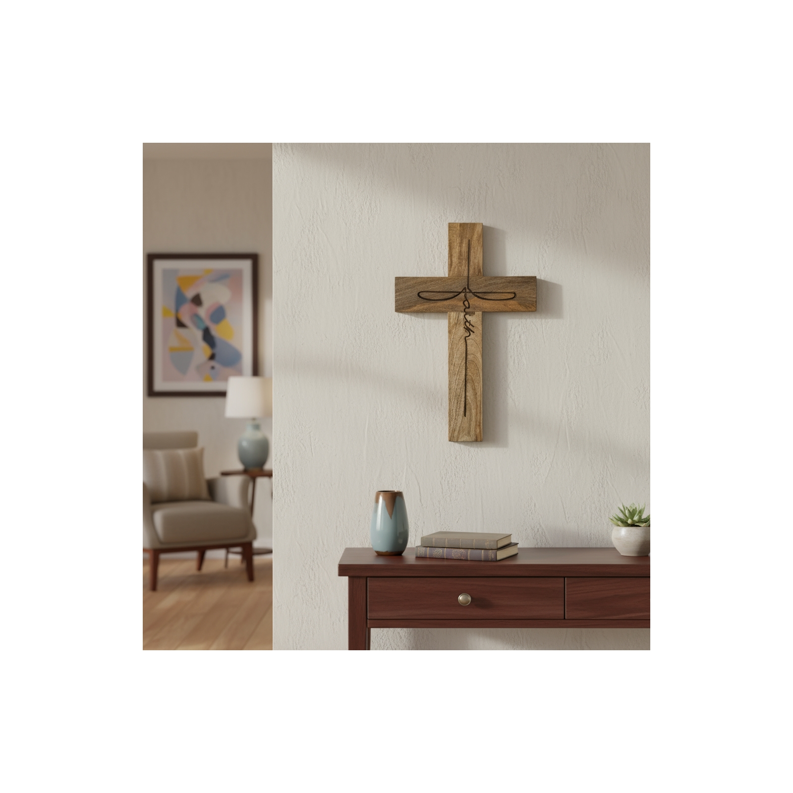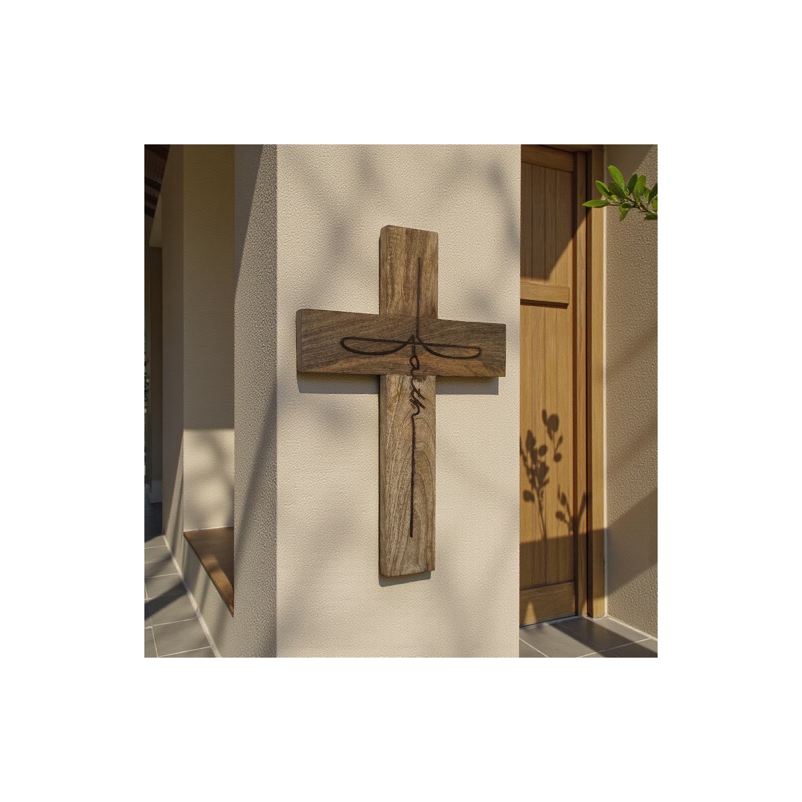 Faith Wall Cross - Burnt Natural
