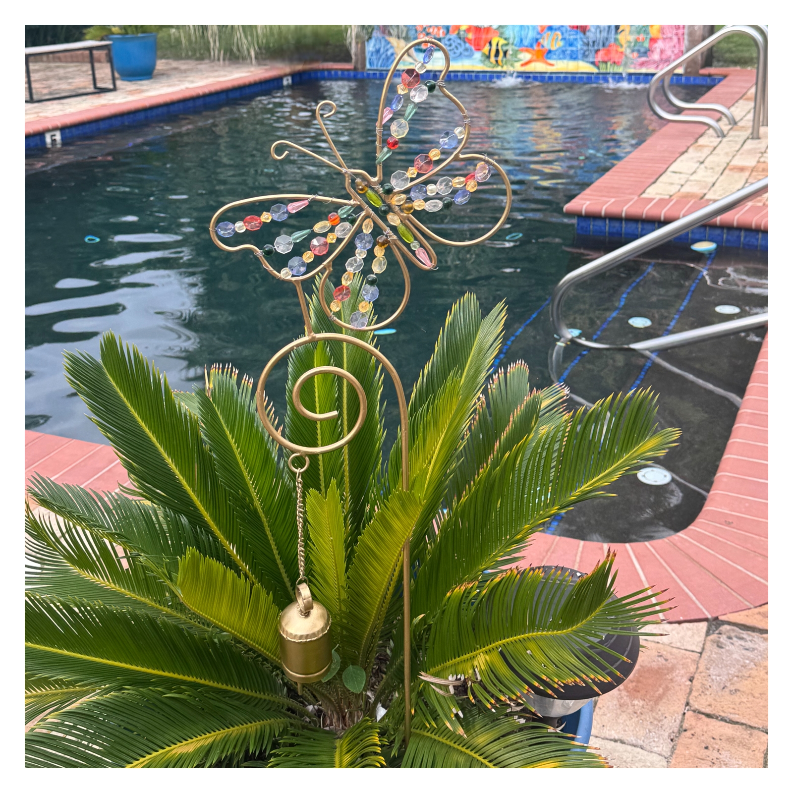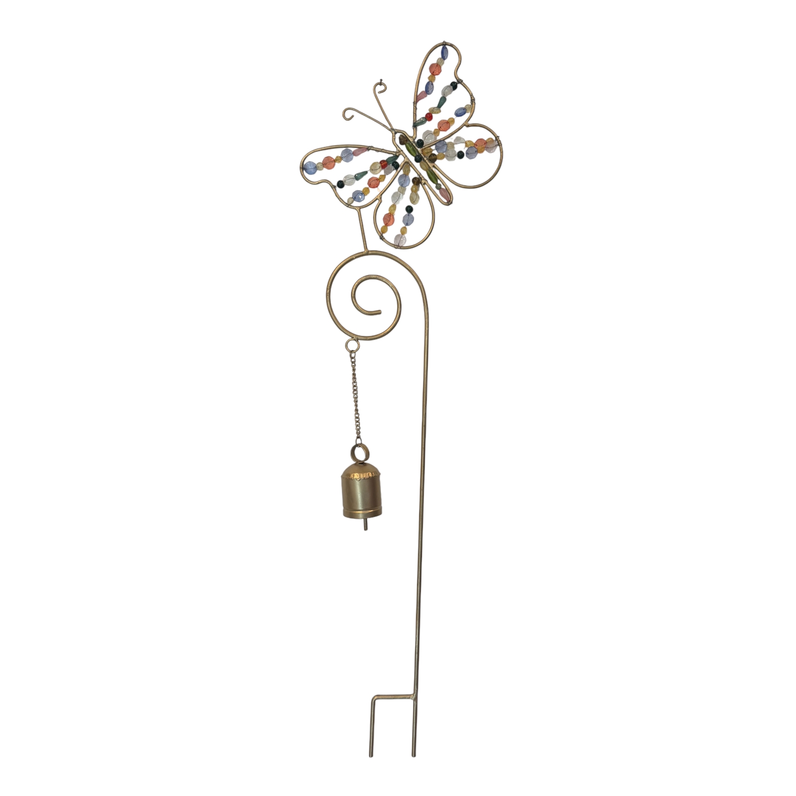 Bejeweled Butterfly Garden Stake with Dangling Cowbell