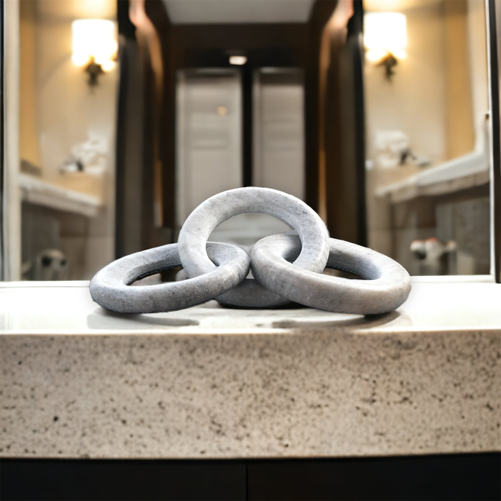 Introducing the Hand-Tooled Ivory-Taupe Marble 3 Link Round Chain the latest must-have item for chic home décor. Sourced from India and skillfully crafted by hand each marble link is polished to a stunning luxurious finish.