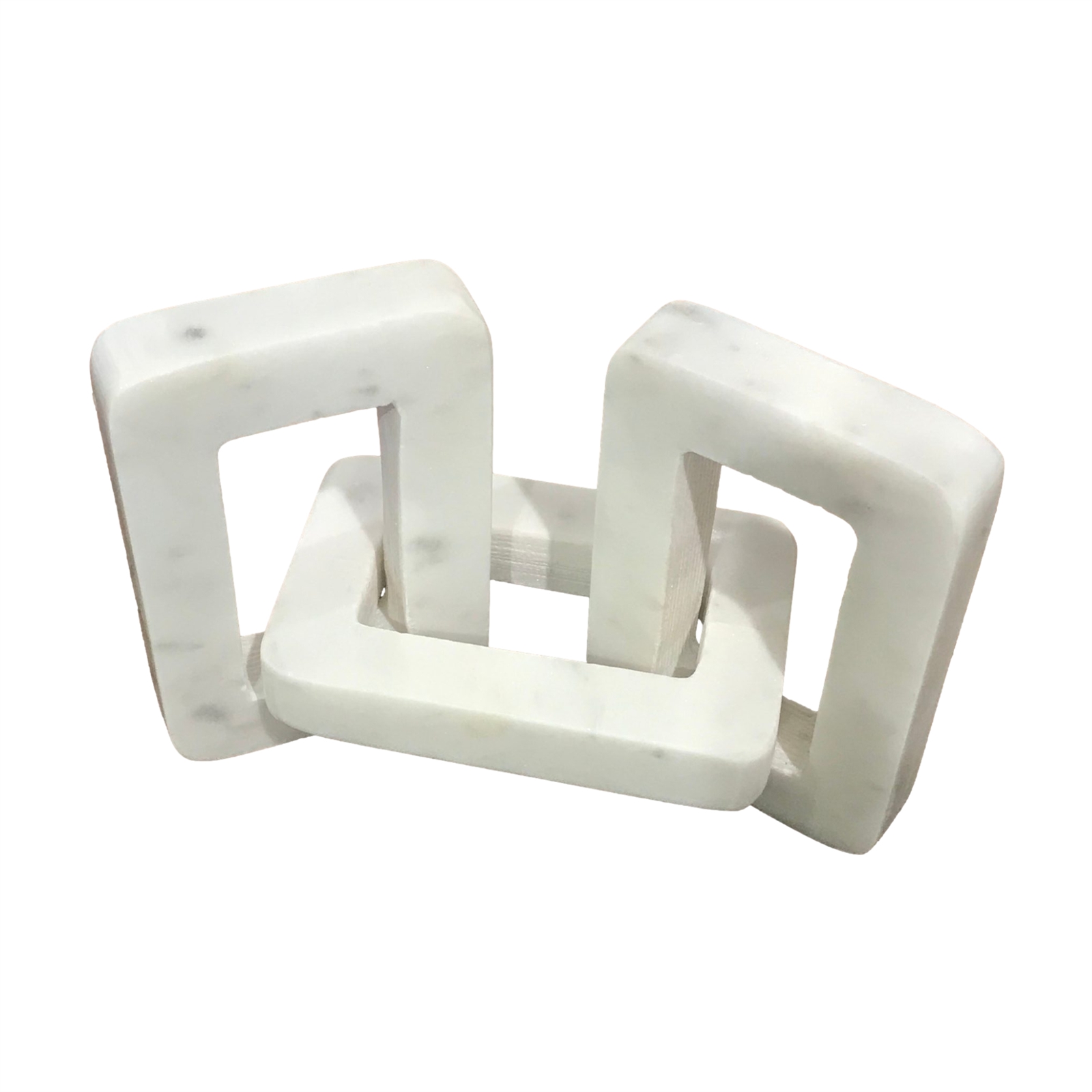 Hand-Tooled White Marble 3 Link Rectangle Sq-Cornered Chain the latest decor trend for the chic home. Sourced from India and skillfully crafted by hand each marble link is polished to a stunning luxurious finish.