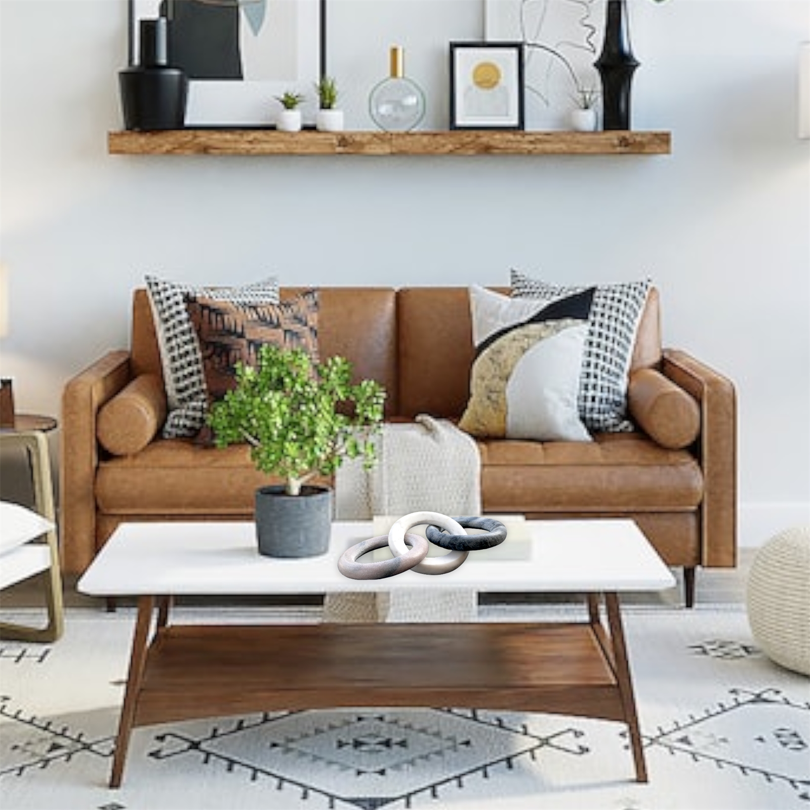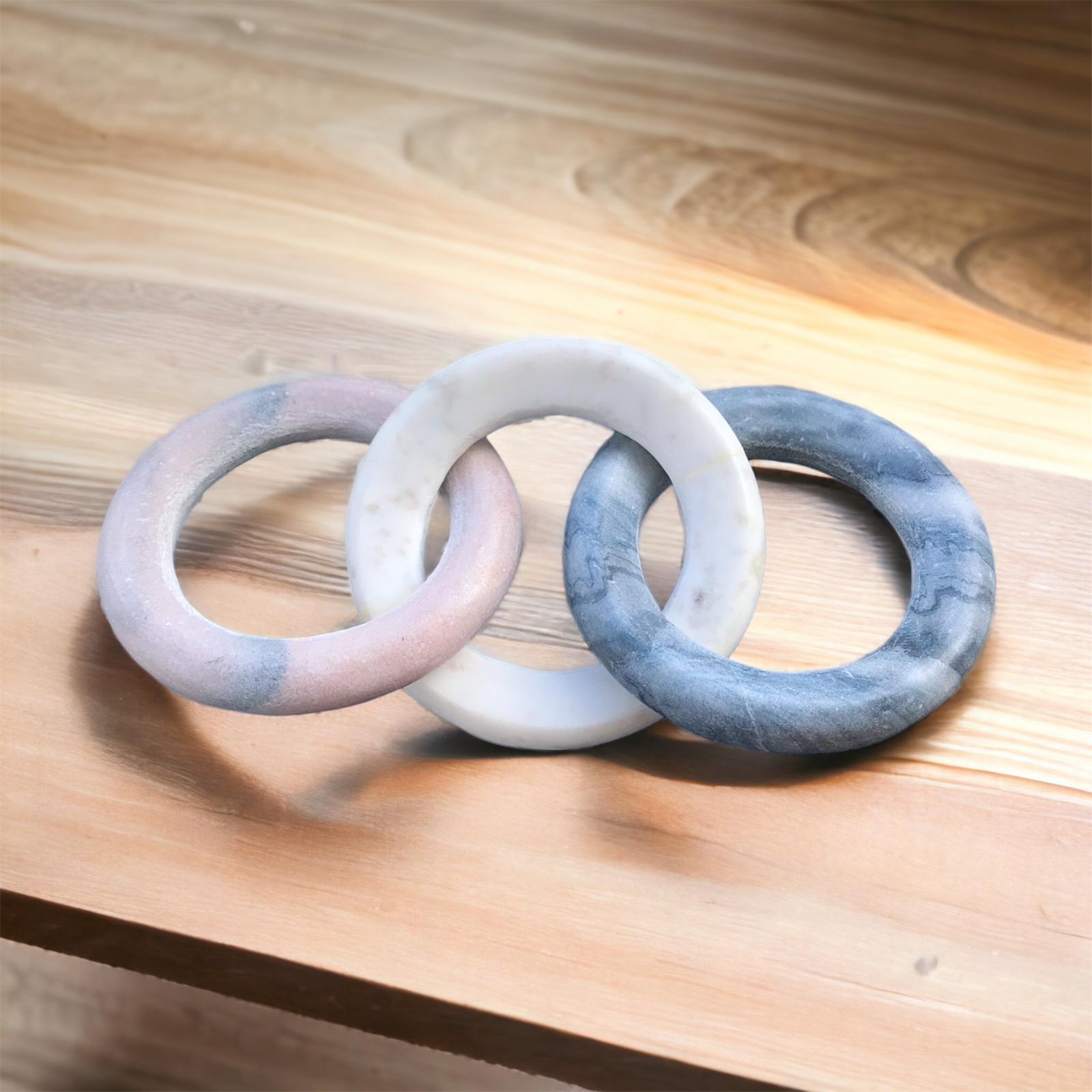 Hand-Tooled Tri-Color Marble 3 Link Round Chain the latest must-have item for chic home décor. Sourced from India and skillfully crafted by hand each marble link is polished to a stunning luxurious finish and combines White Rose-Pink and Grey-Black Rings to create a unique set.