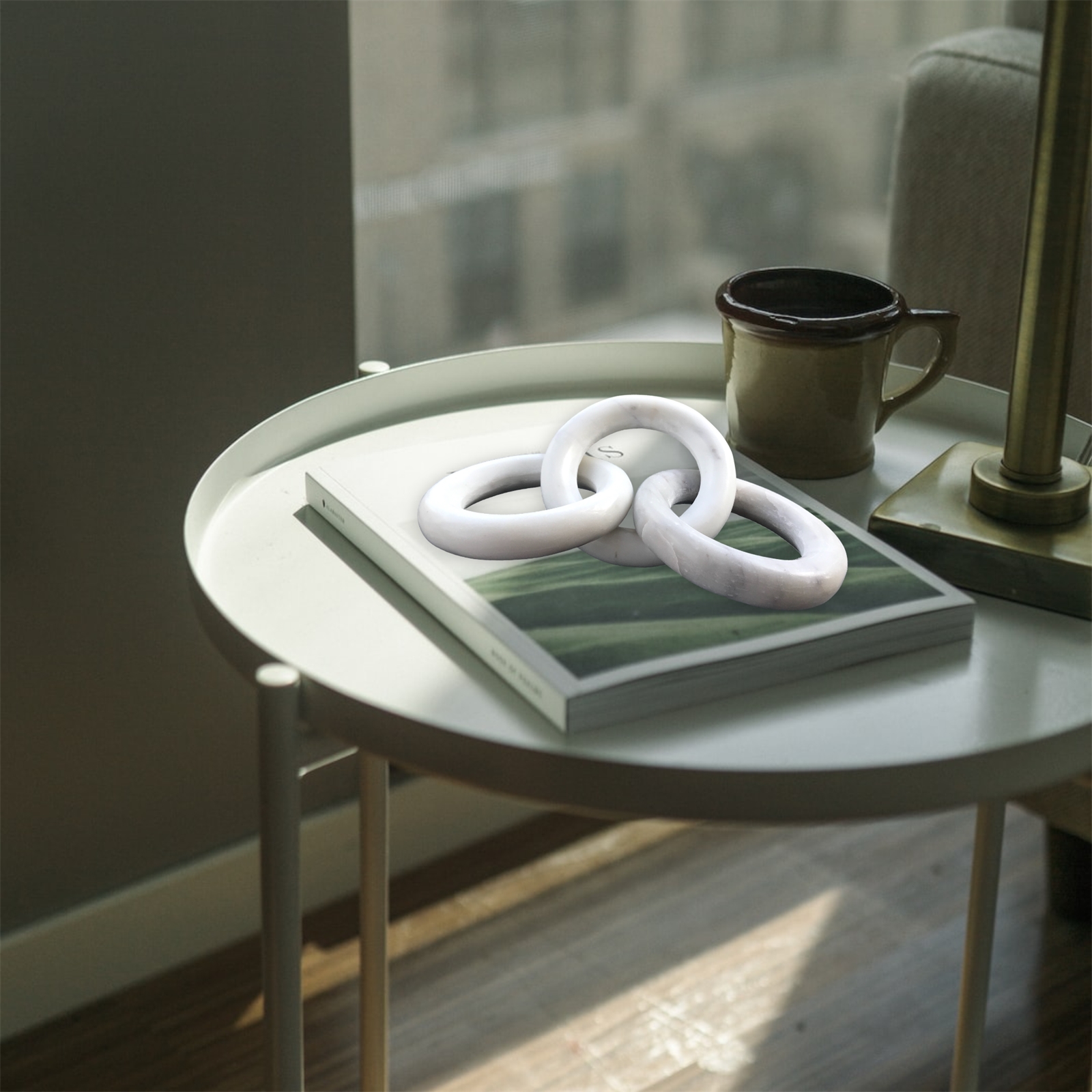 Hand-Tooled White Marble 3 Link Round Chain the latest must-have item for chic home décor. Sourced from India and skillfully crafted by hand each marble link is polished to a stunning luxurious finish.
