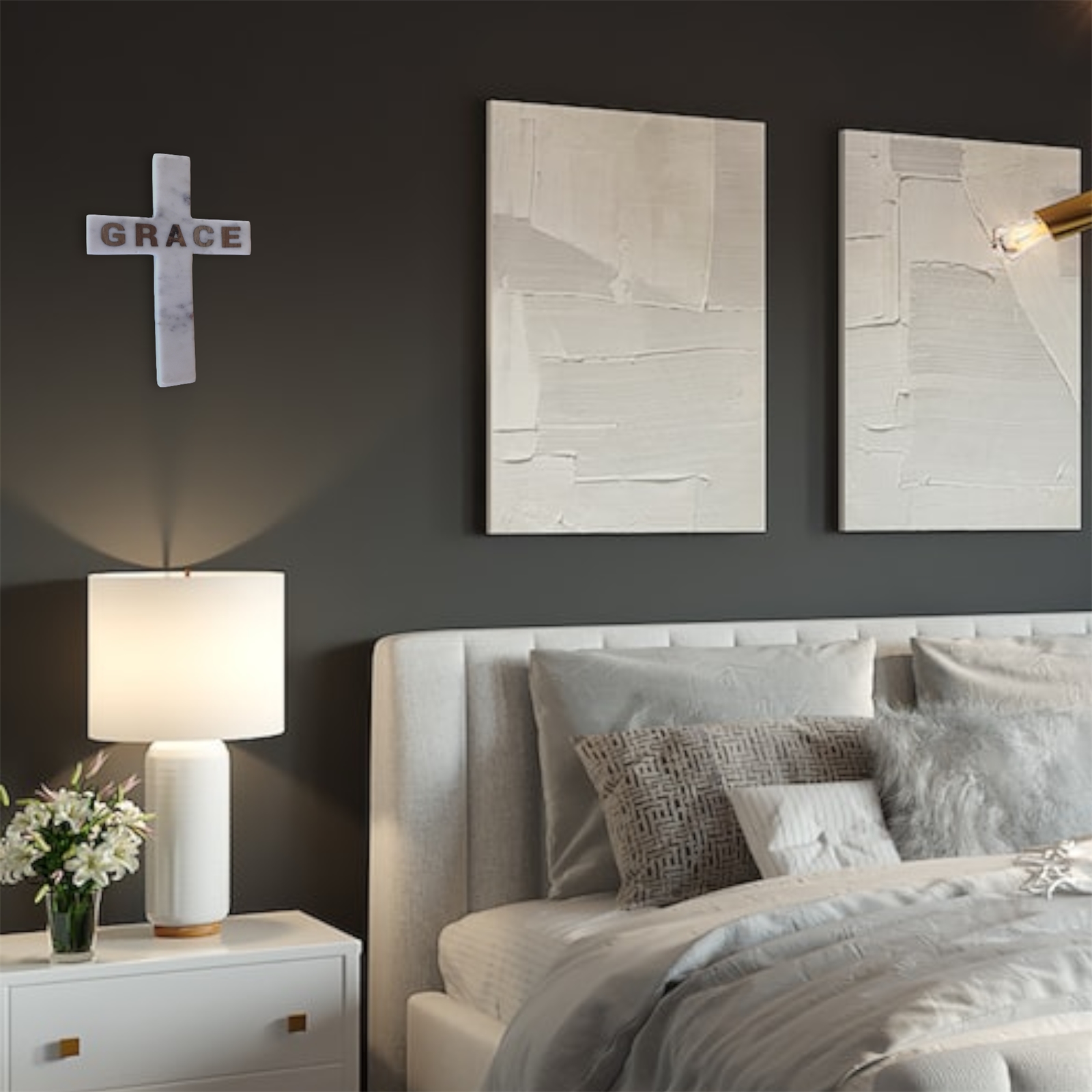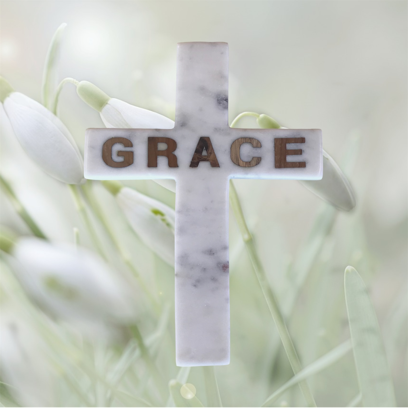 GRACE Inlay Marble Cross -White