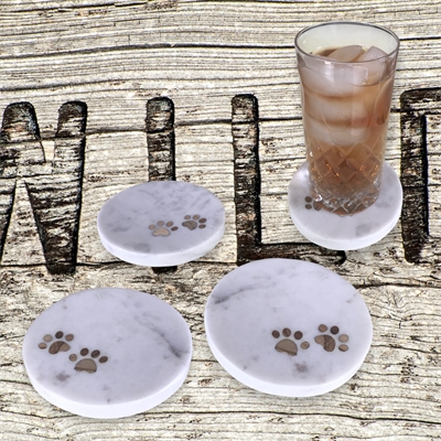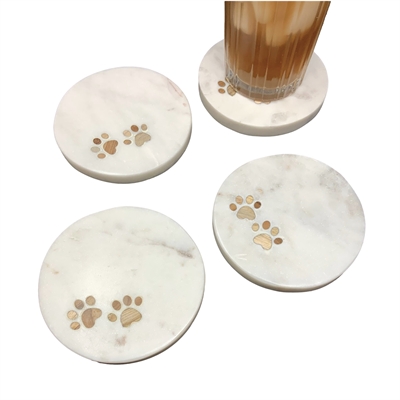 Set of 4 Paw Print Marble Coasters -White