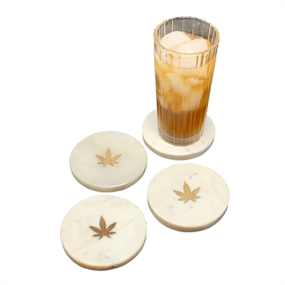 Set of 4 Cannabis Leaf Marble Coasters -White