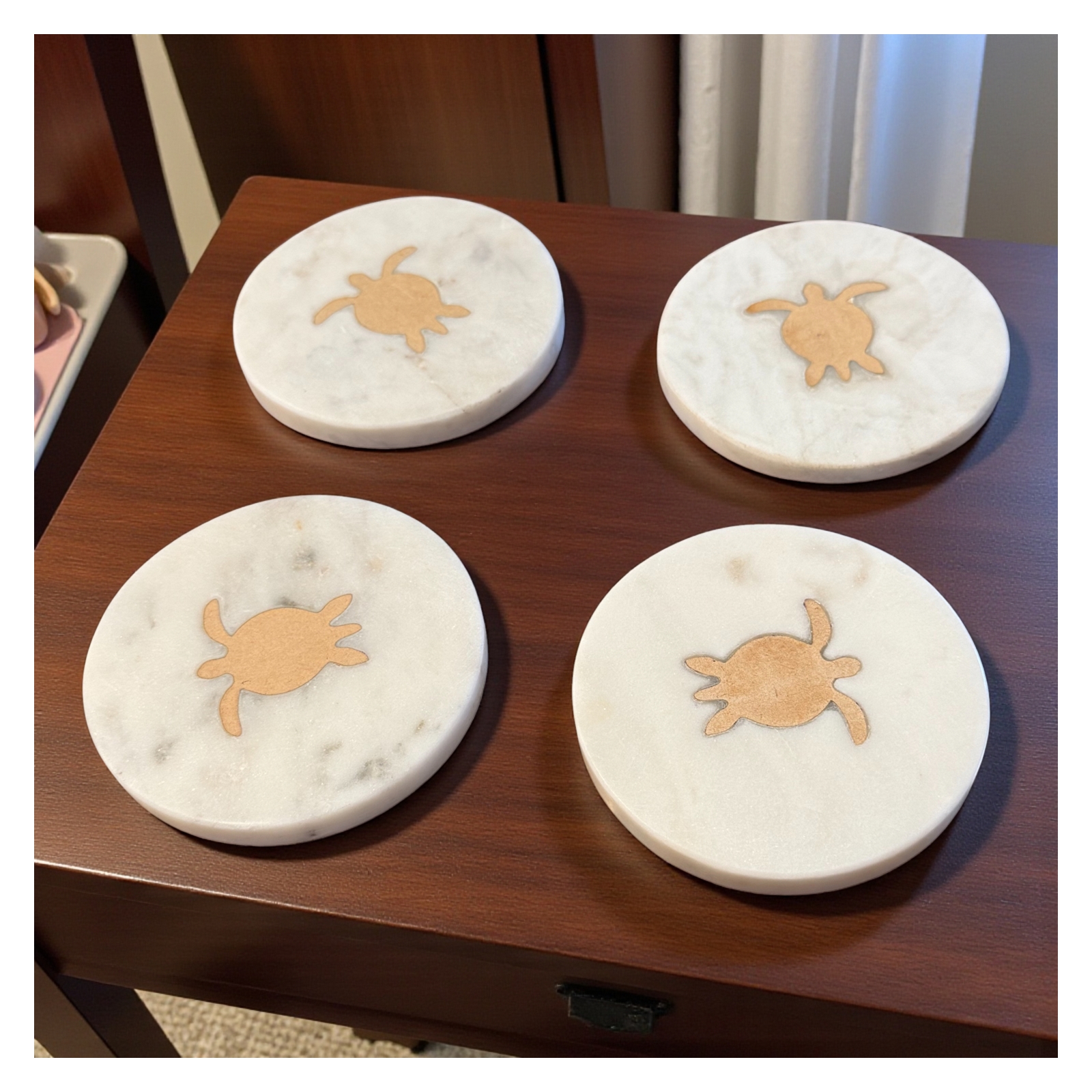 Set of 4 Sea Turtle Marble Coasters -White