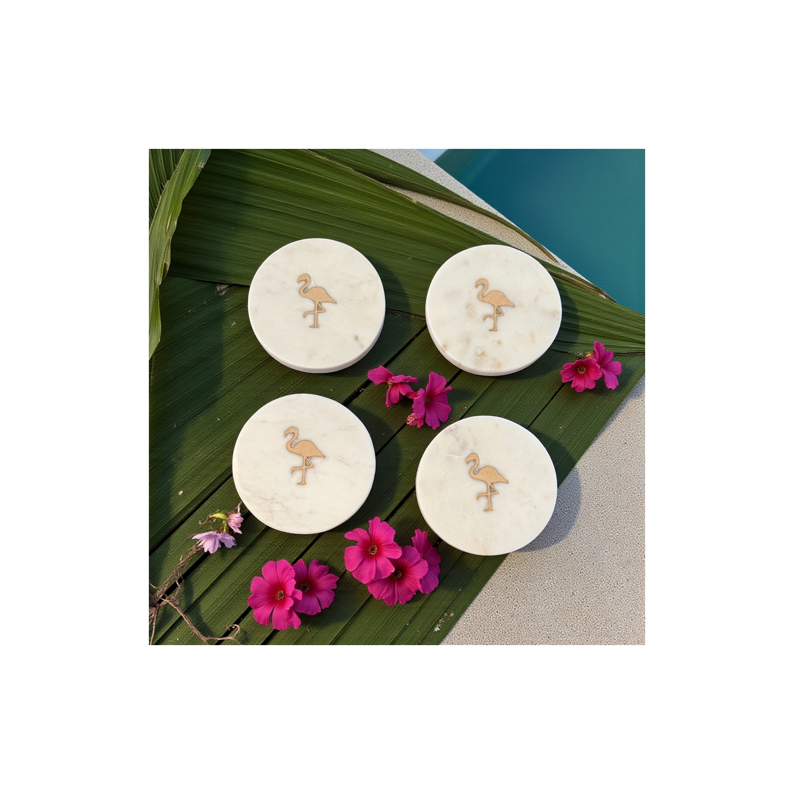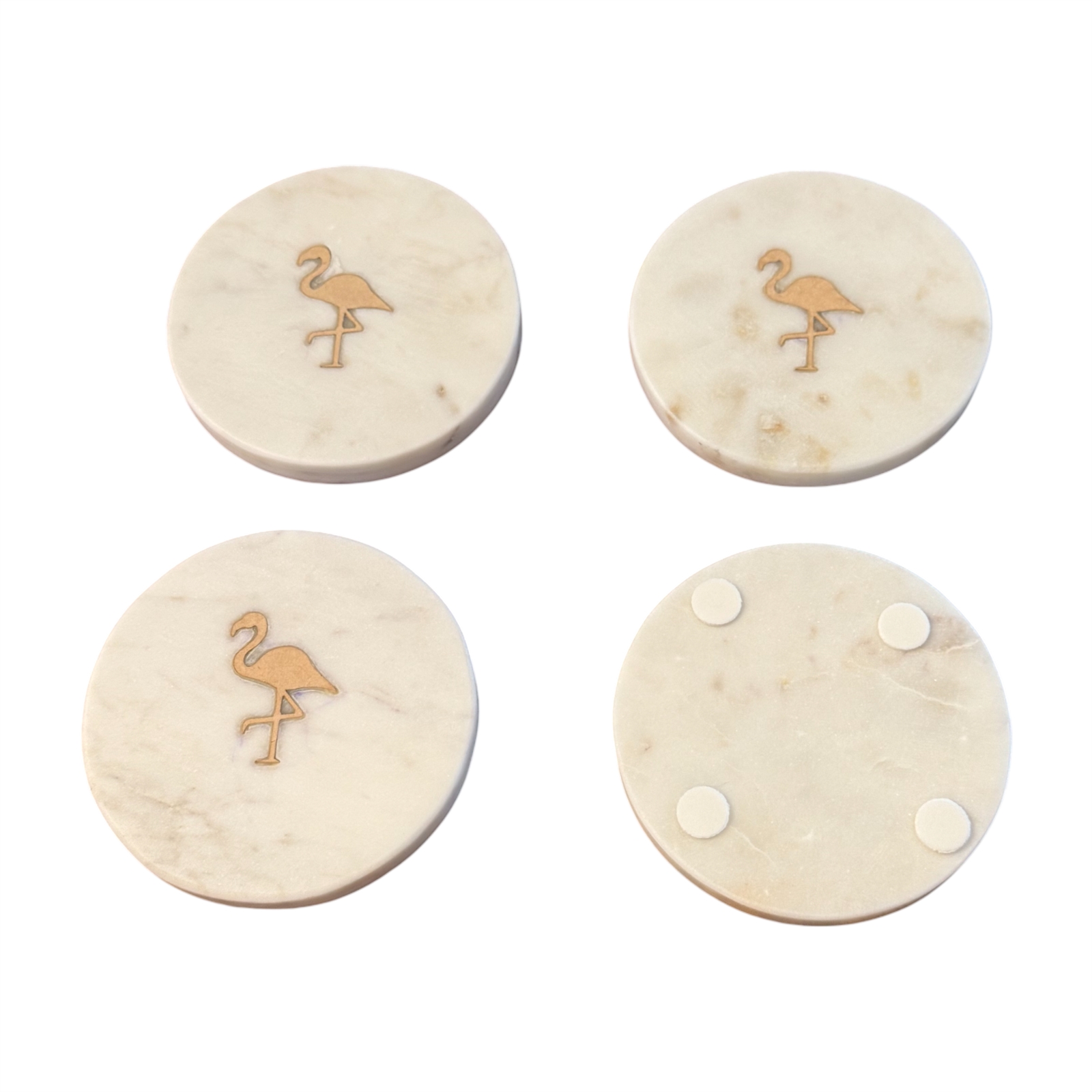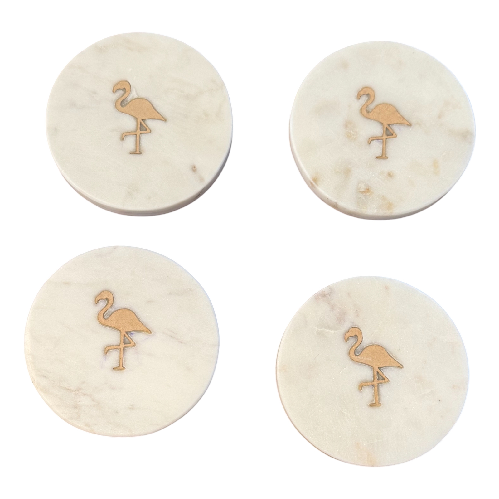 Set of 4 Flamingo Marble Coasters -White