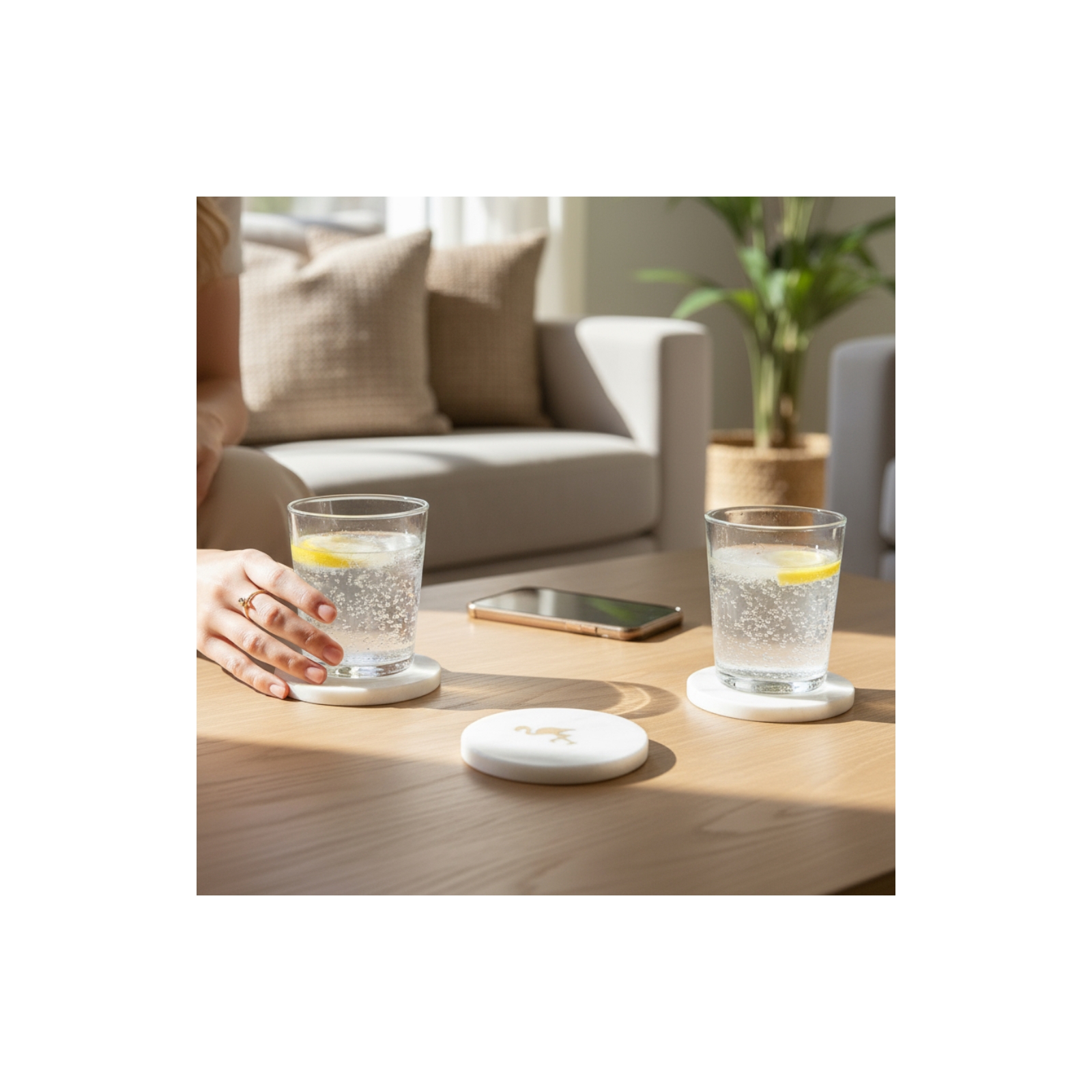 These heavy, durable coasters stay put — no more sticking to the bottom of your glass! Each features anti-skid pads on the underside to protect your furniture from scratches and provide stability. Perfect for hot or cold beverages, these coasters combine style, craftsmanship, and practicality in every piece.