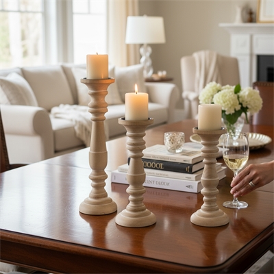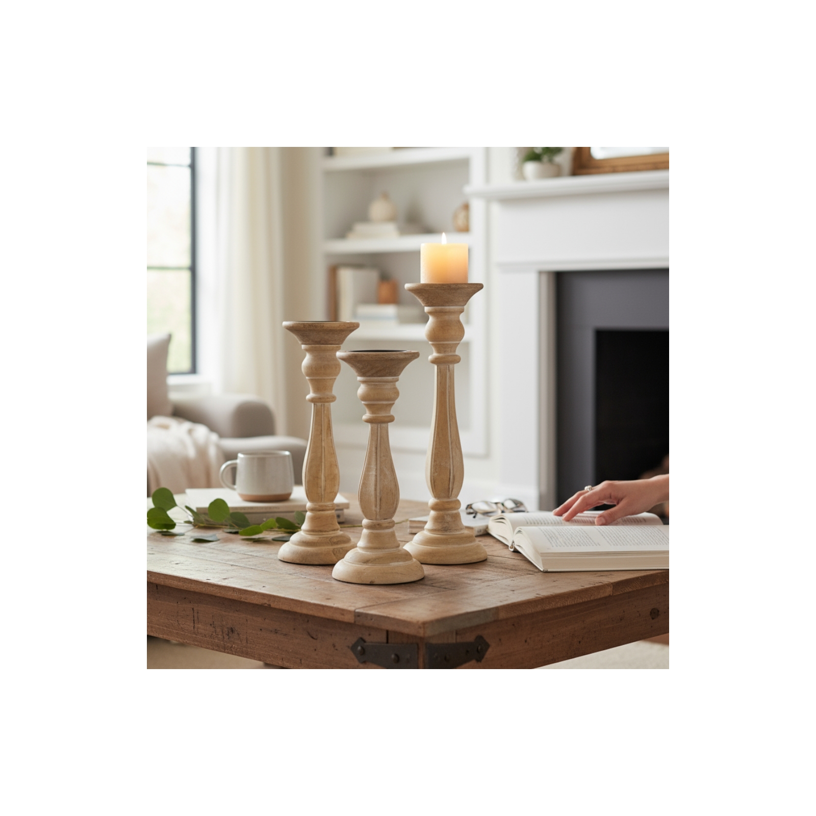 Set of 3 Savannah Candle Holders-Bleached Wood