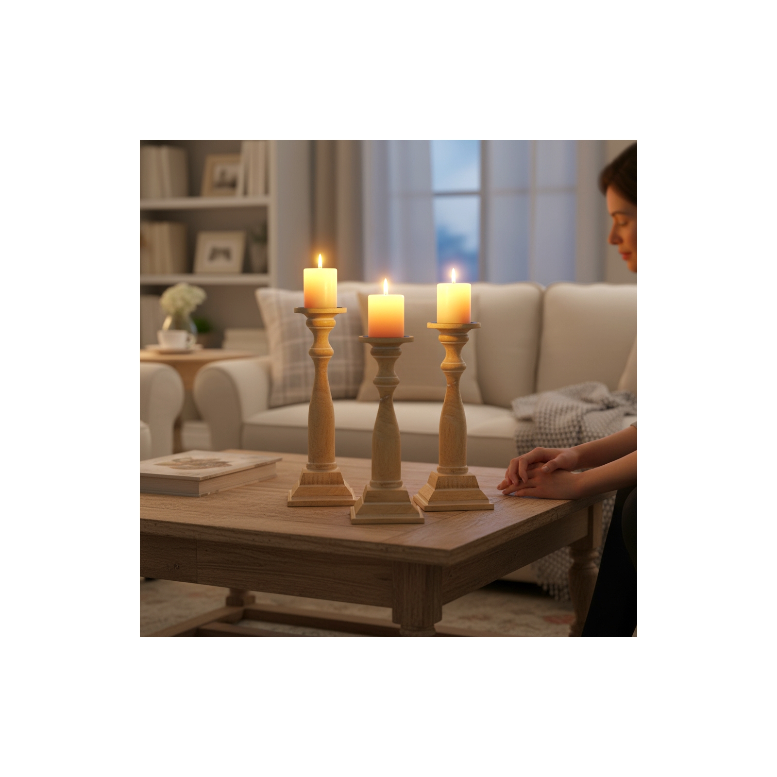 Set of 3 Manzanita Candle Holders-Bleached Wood