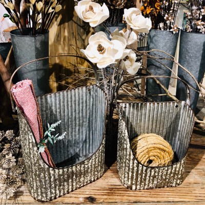 Set of 2 Coal Buckets for Wall/Table