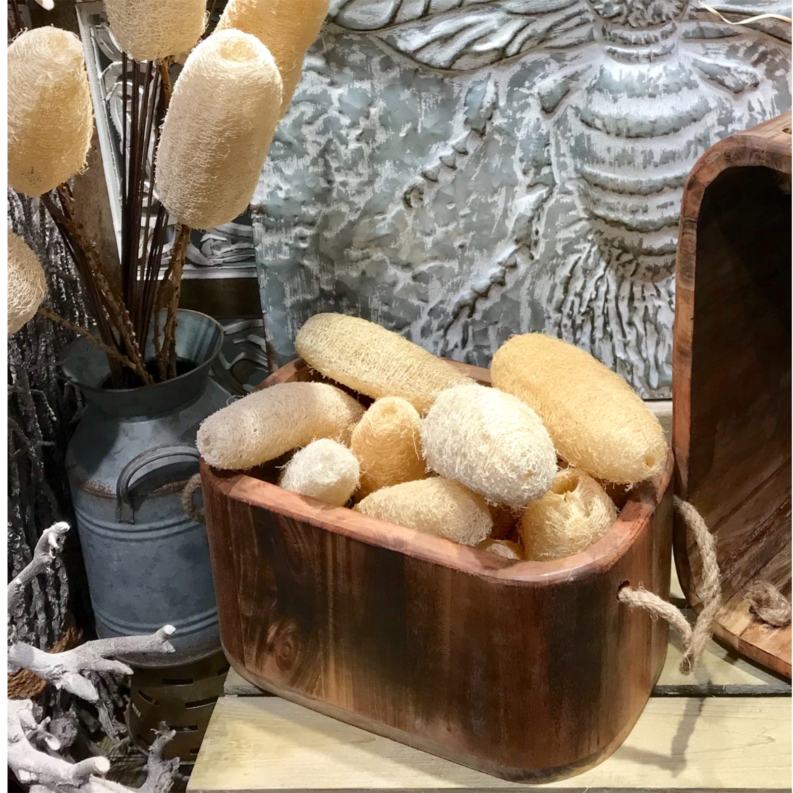 NATURAL ORGANIC DESIGN: Each loofah is a dried, unique size and shape and semi bleached to add a unique organic touch to your decor.