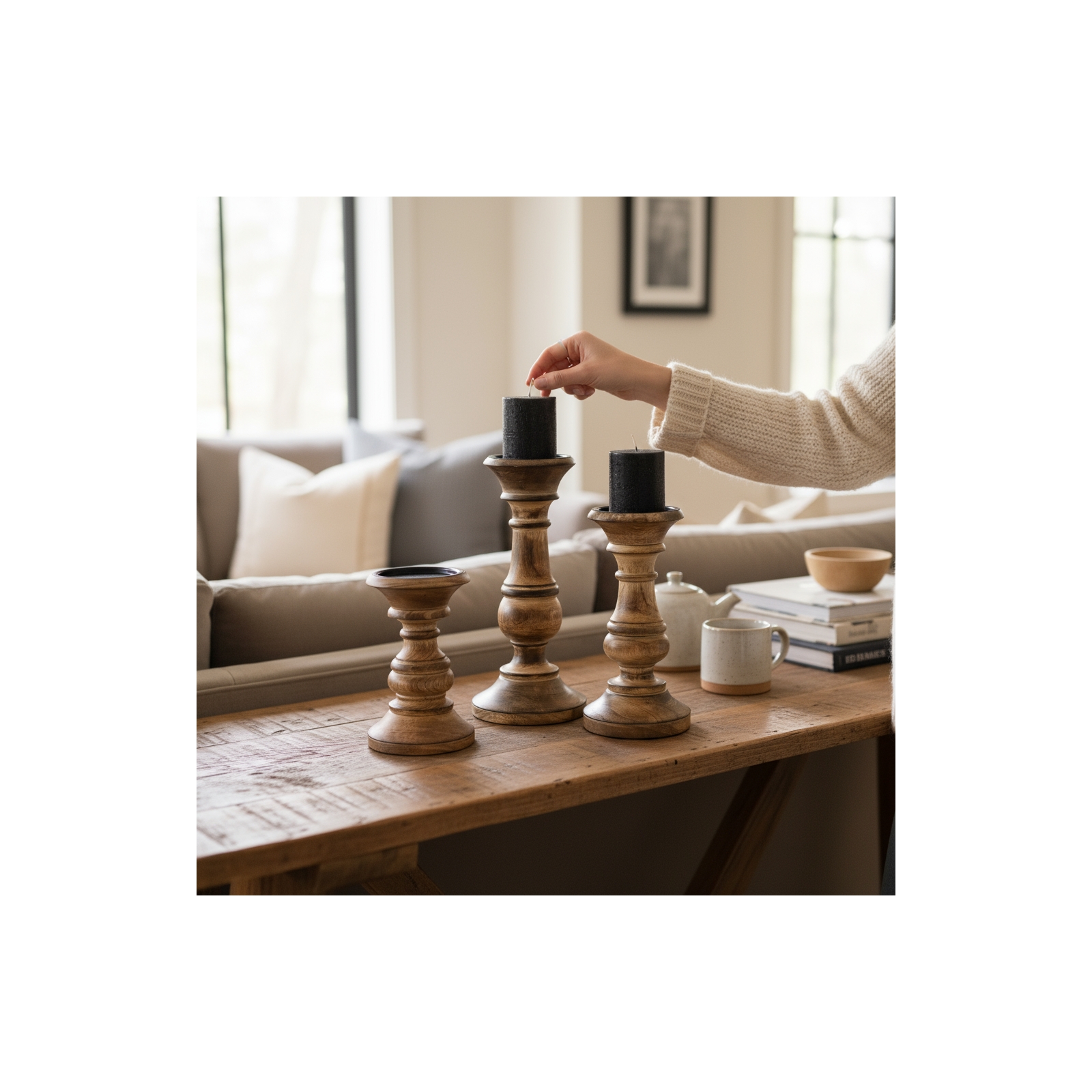 Set of 3 Dodge House Pillar Holder-Medium Oak Stained-4/4/16
