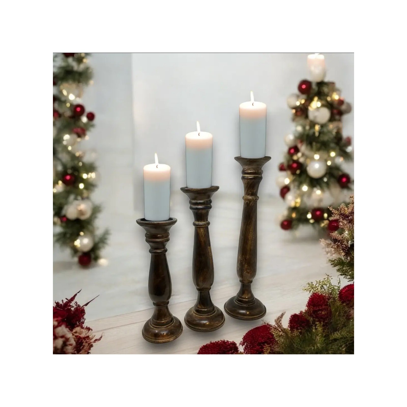 Set of 3 Princeton Pillar Holder-Medium Oak Staine