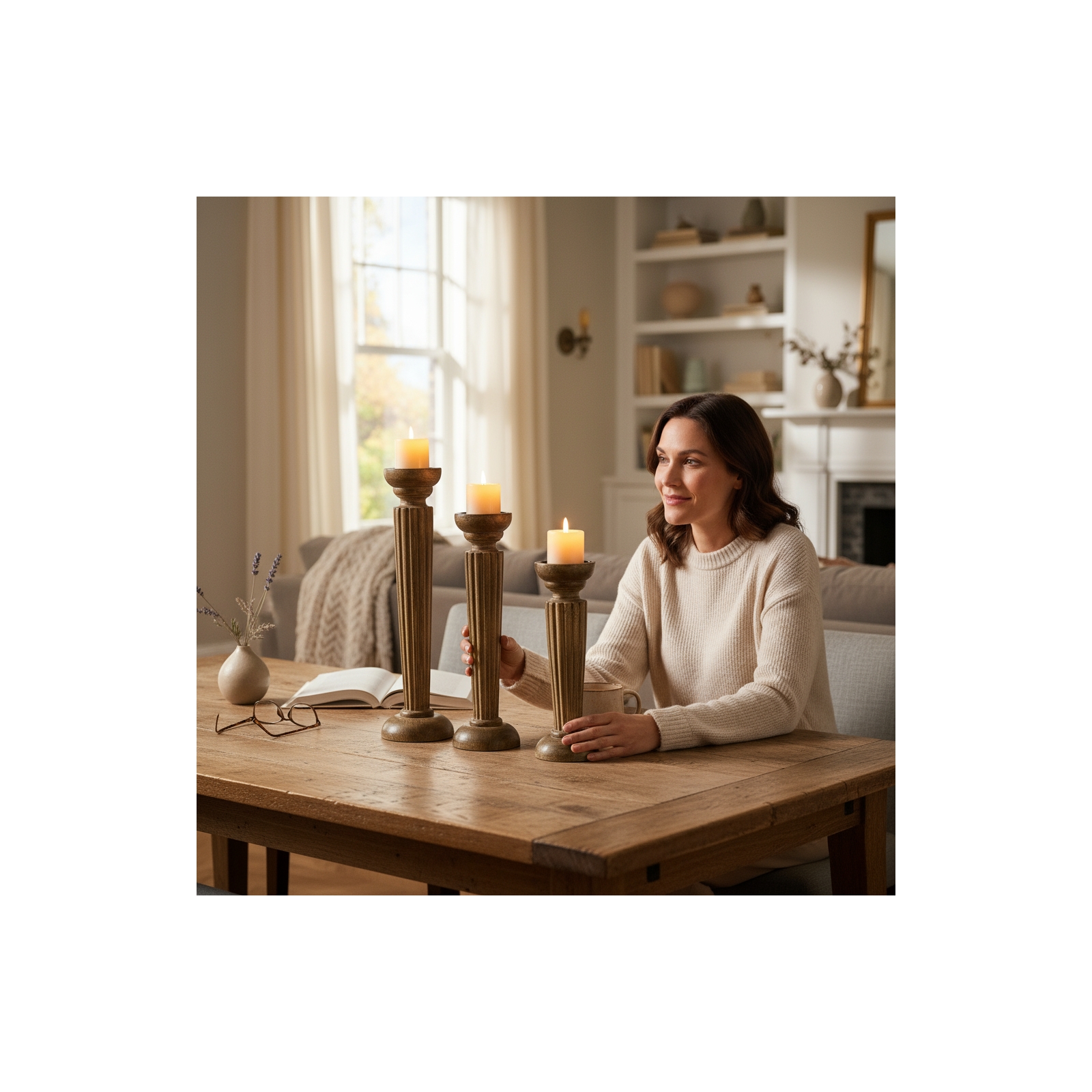 Set of 3 Hampshire Pillar Holder-Shabby Brown