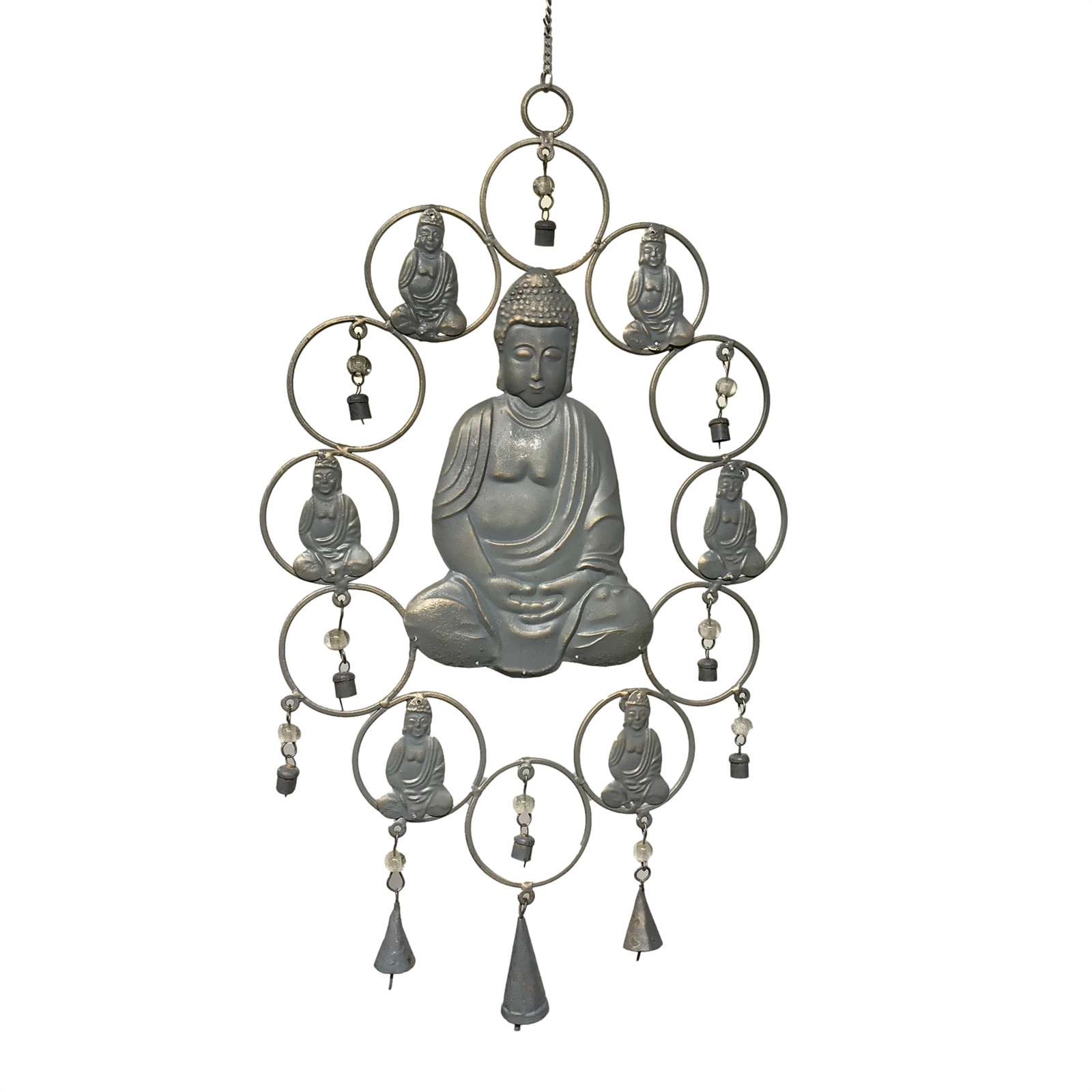 Set of 2 Buddha Bell Chime-Gray Gold-2/2/8