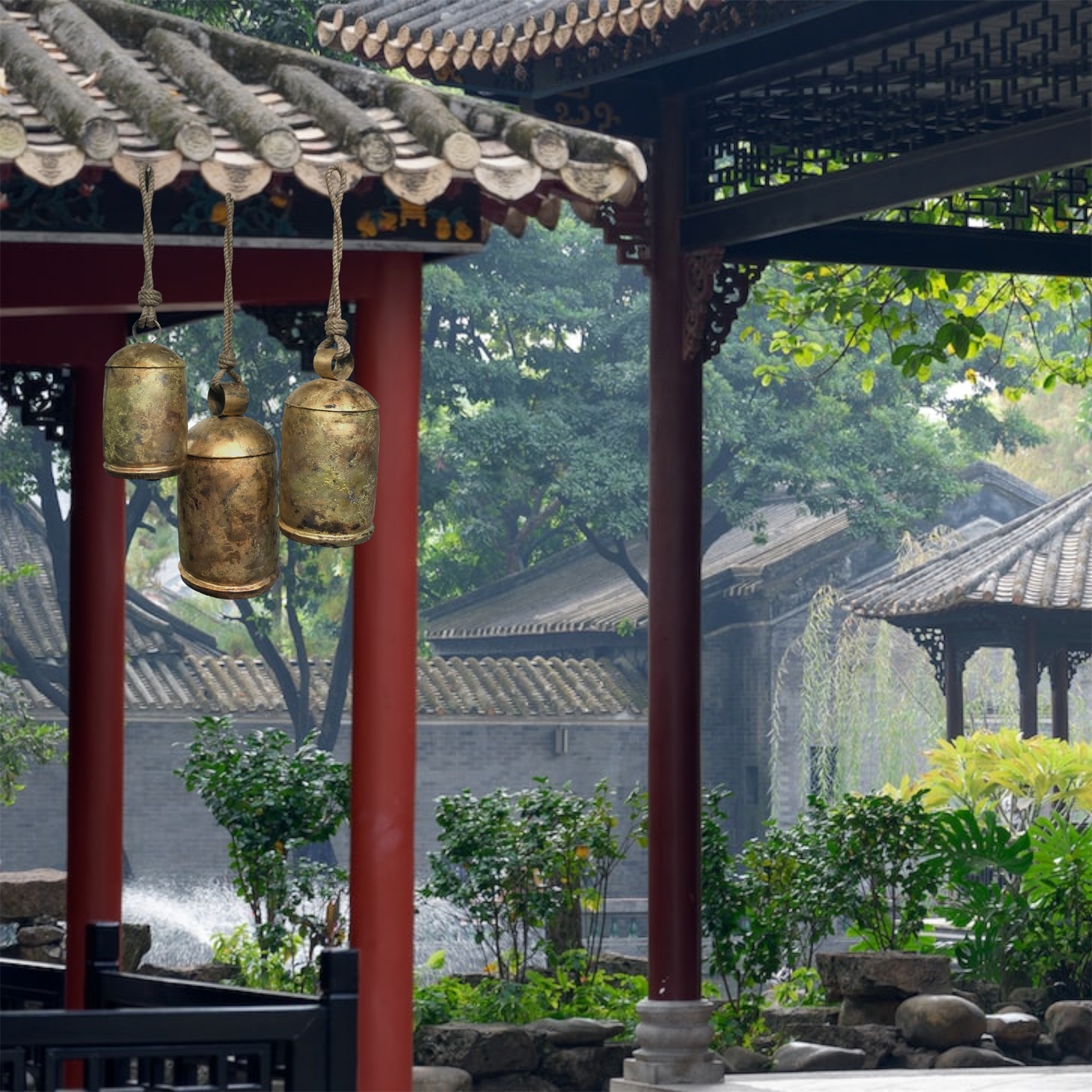 With their size craftsmanship and undeniable presence this set of three oversized meditation bells is a remarkable accessory that embodies both artistry and tranquility. Elevate your surroundings and make a profound statement with this extraordinary addition to your home or garden.