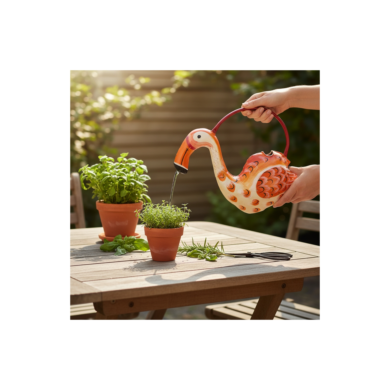 Fanny is thoughtfully designed with a fill hole on her back, and when you pour, the water fans gently from her beak—adding charm and practicality in one piece.