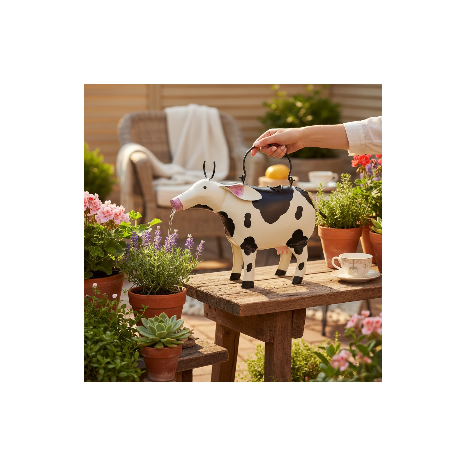 Designed with a fill hole on her back, Catlyn pours water gracefully through hernose, fanning it out perfectly to water your favorite plants with style.